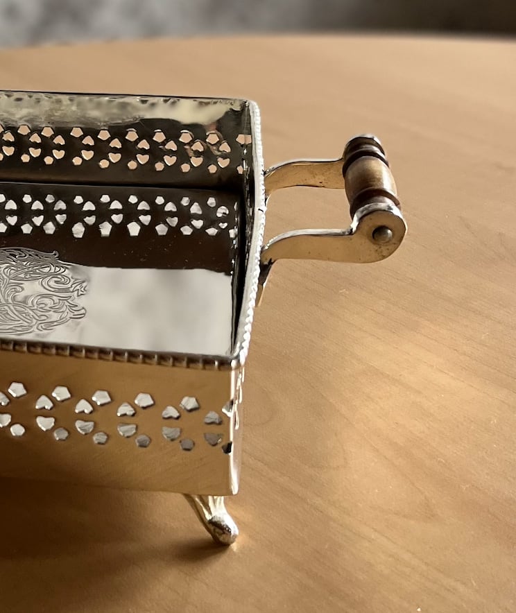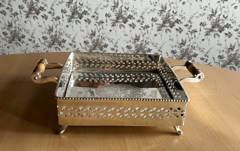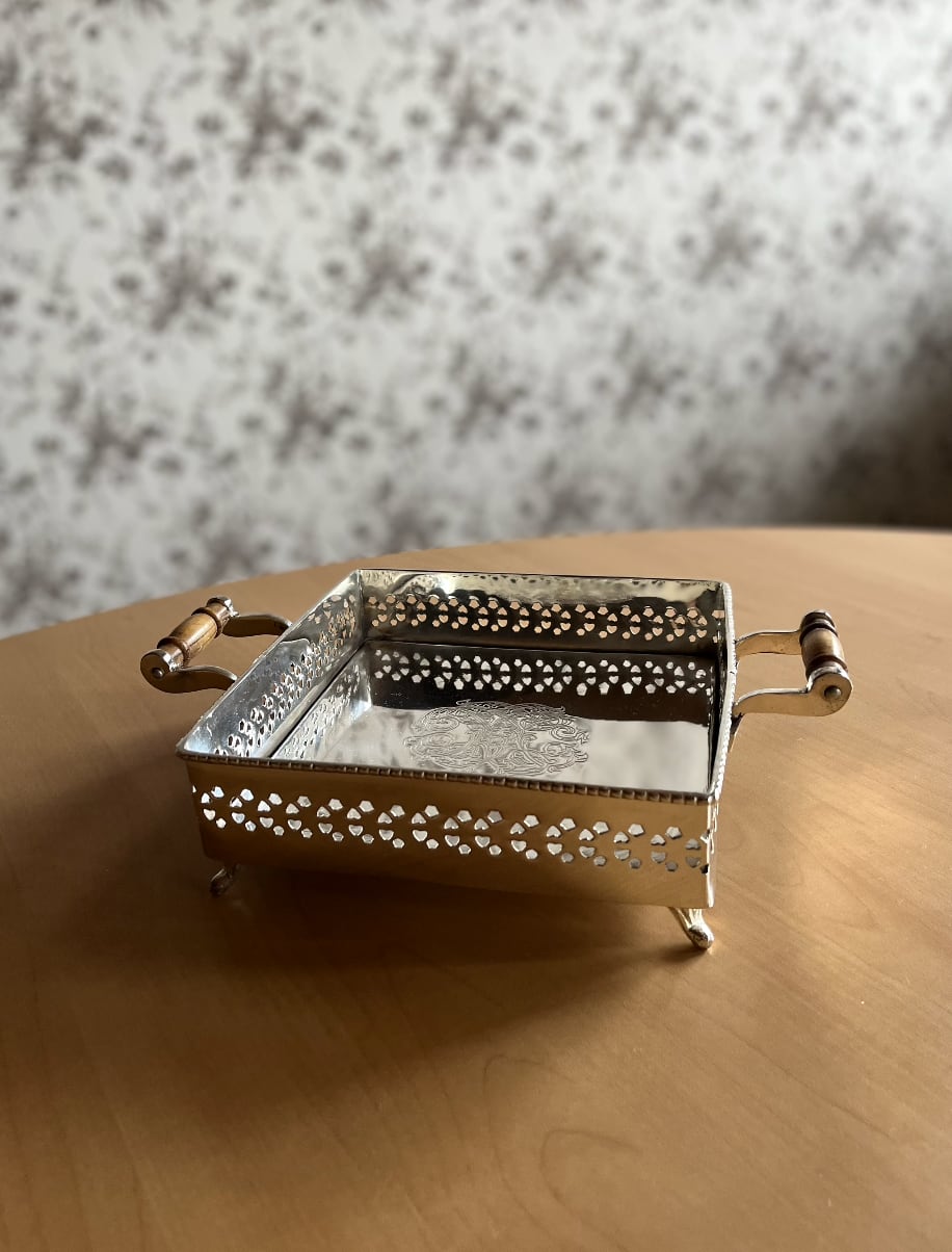 憧れのシルバー皿 特別な一品  スクエア 取手付き